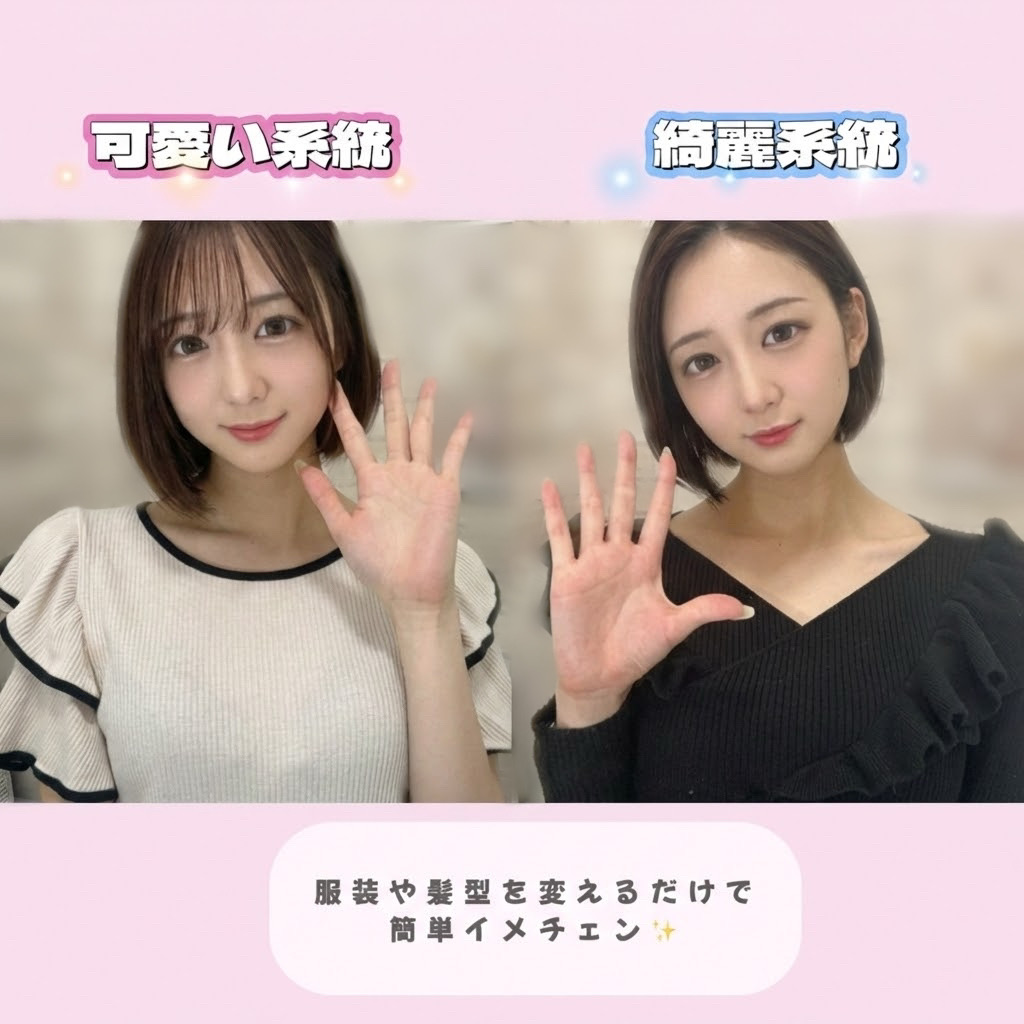 こちら参考例ですが、可愛い系統綺麗系統の衣装を着てみました!